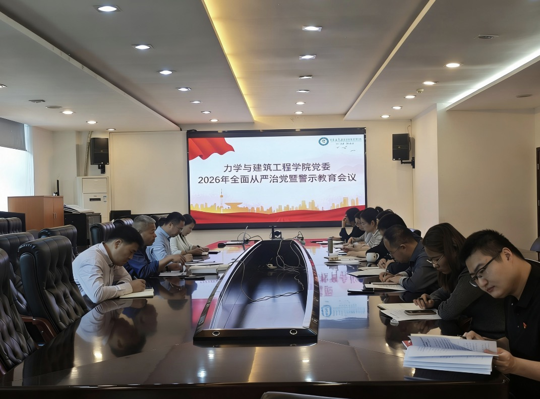 为进一步贯彻落实全面从严治党会议精神,总结经验,分析形势,推动全面从严治党工作迈上新台阶,3月27日下午,力学与建筑工程学院(以下简称“学院”)在蒙民伟理工楼519会议室召开2026年全面从严治党暨警示教育会议。会议由党委书记田金奎主持,学院党委委员、领导班子成员、系主任、党支部书记参加会议。